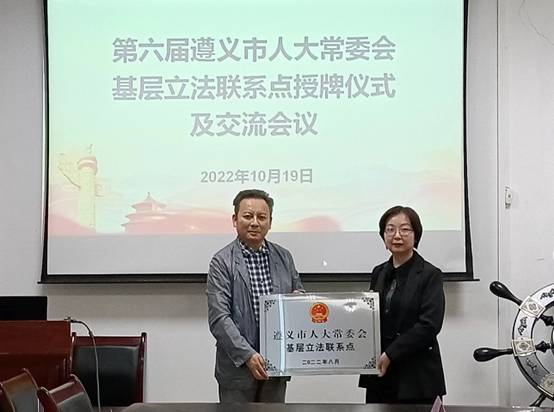 10月19日,遵义市六届人大常委会基层立法联系点挂牌仪式在公司betway必威中国举行。市人大法制委主任委员、市人大常委会法工委主任胡鹏、市人大常委会法工委副主任彭琴、市人大法制研究中心主任田小银、市人大法制研究中心刘幸 、市人大常委会法工委干部黄安强参加授牌仪式,并进行实地调研。