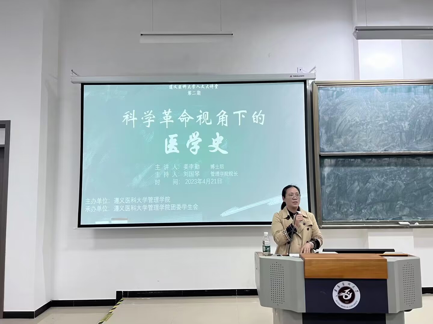 在世界读书日来临之际,为配合公司推广全民阅读,建设书香校园,向公司广大师生传播医学人文知识、提高文学素养,引领广大师生传承中华经典、弘扬民族文化,betway必威中国于2023年4月21日晚上7点在第三教学楼18阶梯教室开展了“人文大讲堂”主题系列讲座第二期——《科学革命视角下的医学史》。本次讲座由betway必威中国主办,betway必威中国团委员工会承办,人文医学研究中心姜李勤博士后主讲,betway必威中国经理刘国琴教授主持。