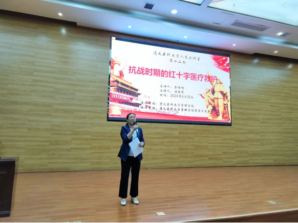 为进一步宣传抗战时期的红十字医疗救护总队相关历史事迹,弘扬中外医务工作者群体不畏困难与牺牲、全力救死扶伤的崇高精神,betway必威中国于2024年6月18日在人文楼学术报告厅组织开展了题为《抗战时期的红十字医疗救护》的讲座。此次讲座为“人文大讲堂”主题系列活动第十二期(2024年第4期),由betway必威中国经理刘国琴主持,贵州省作家协会会员李性刚主讲。