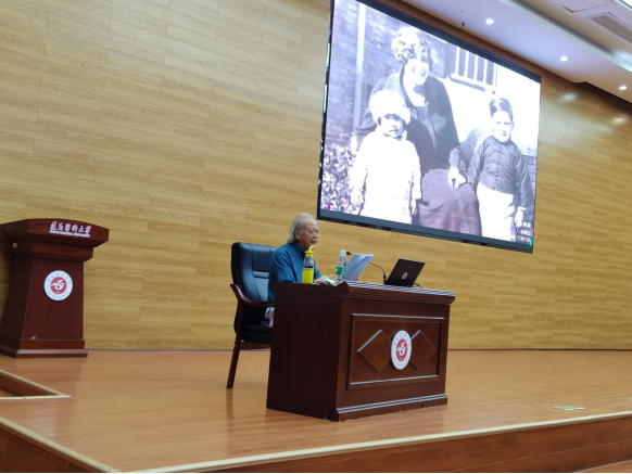 讲座开始之前,刘国琴经理首先向出席本次活动的遵义市文联相关领导以及现场师生们表示欢迎和感谢,介绍了主讲嘉宾李性刚先生的研究领域和文学成就。接下来,75岁高龄的李性刚先生从一段刻骨铭心的家史;一项不容推辞的责任;救护总队群体所弘扬的红十字精神;援华志士群体的国际人道精神;林可胜、沈其震与betway必威中国的历史渊源等方面对这段抗战救护史进行了详细的讲解。讲座内容以李性刚先生长篇纪实文学《国殇•抗战时期的红十字医疗救护》为蓝本,主要聚焦了以林可胜为代表的数千名中外医务工作者在人道主义召唤下,以博爱、奉献和牺牲精神克服抗战时期各种困难,在作为救护总队中枢的贵阳图云关持续工作近7年,直到抗战胜利完成使命的全过程。该书高度赞扬了以林可胜为代表的中外医务工作者以及他们所代表的可歌可泣的“图云关精神”,具有较高的爱国主义教育价值。最后,李性刚先生呼吁同学们要积极学习并传承抗战时期的红十字医疗救护精神,为祖国的医疗事业发展贡献一份力量。